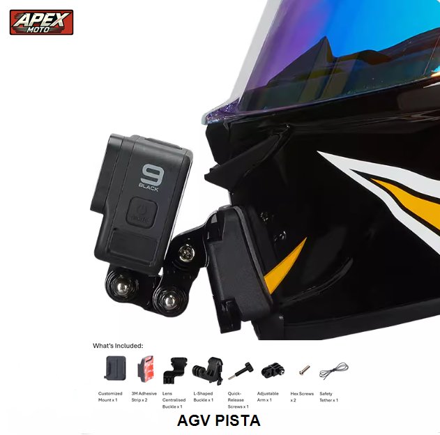 Designed specifically for the AGV Pista helmet, this GoPro holder is the ultimate accessory for riders who want to document their journey. Built with precision, it ensures stability, durability, and seamless integration with your helmet’s design.