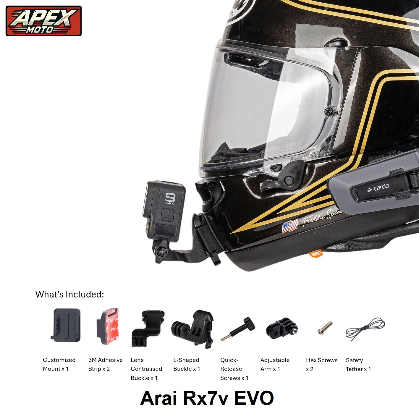 - Perfect Fit for Arai RX7V Eco: Custom-tailored to align perfectly with the contours of the Arai RX7v Eco helmet, ensuring a secure and aerodynamic attachment